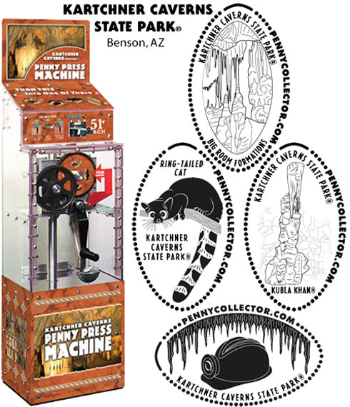 Retired 2 Designs are: 1) "Kartchner Caverns State Park@ - Throne - Room - Kubla - Khan - 58 Ft. - Tall" DESIGN: Kubla Khan cave formation. (V), 2) "Kartchner Caverns State Park@ - Cave - Bat" DESIGN: Flying bat ( actually looks like they pictured a Flying Fox bat - which isn't even found in North America...they are from Asia!!) w/ cactus & stars. (H), 3) "Kartchner Caverns State Park@ - Big - Room" DESIGN: Cave formations in the Big Room of the Cave. (V), 4) "Kartchner Caverns State Park@ - Shasta Ground Sloth" DESIGN: The extinct Giant Ground Sloth ( They found the remains of this species in these Caves ) (H)
