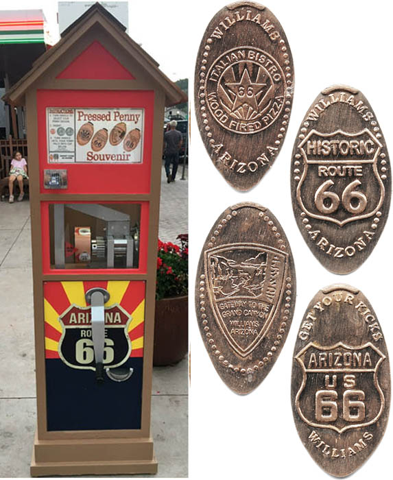 Machine 1 is Outside in front by the corner. Designs are the same as the Route 66 Museum except for the logo. Designs are: