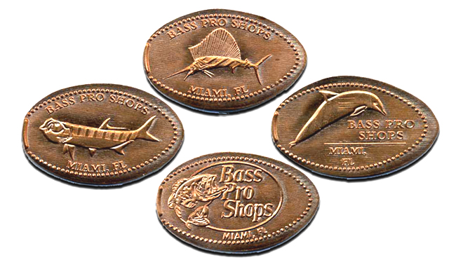 It is a 4 die machine. All had Bass Pro Shops, Miami, FL on them. The images were:
