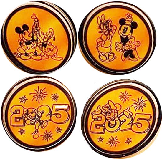 F) Main Street Penny Arcade, Candy Palace (Tokens) (2025) 1) Mickey, Donald and Goofy, 2) Minnie and Daisey, 3) 2025 Mickey, 4) 2025 Minnie.