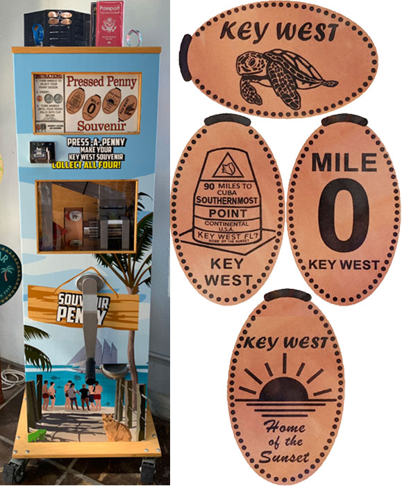 4) '90 miles to Cuba, Southernmost, Point Continental USA, Key West, FL, Home of the sunset', sign in shape of a traffic cone..