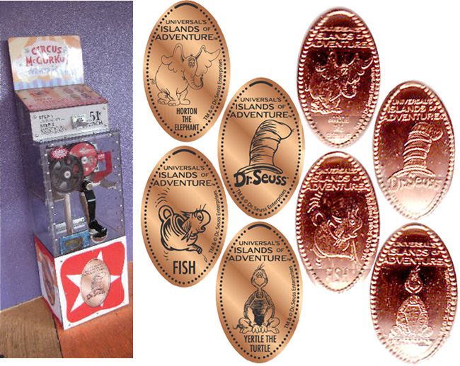 Retired 9: (Seuss Landing 1): 1) Horton the Elephant, 2) Seuss Landing Logo, 3) Seuss standing.