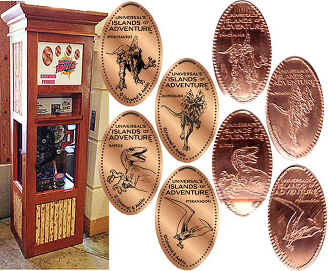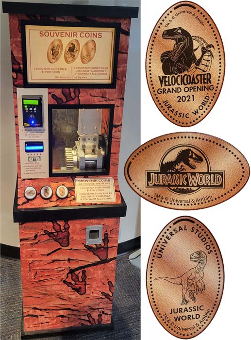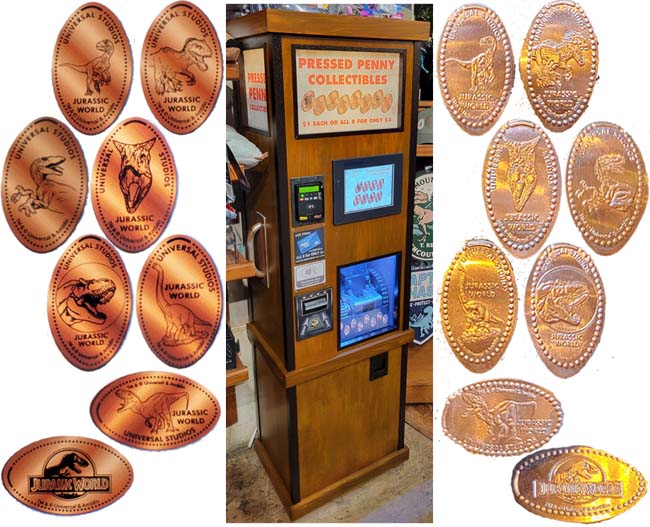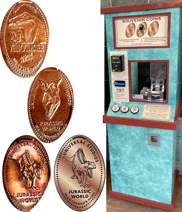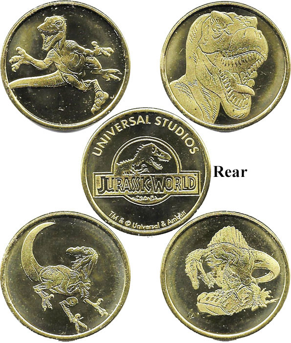 Token Machine 1: (2022) s: 1) T-Rex head, 2) Dimetrodon, 3) Raptor (Turning left), 4) Raptor (Facing Right).