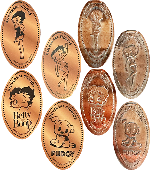 1) Betty Boop Leg kicked out, 2) Betty Boop full-length (v), 2) Betty Boop head winking (v), 4) Pudgy (v) Added photos of new machine HEK
