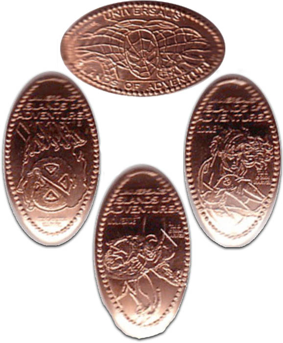 Retired 11: (Kingpin's Arcade Inside): 1), Hulk ripping coaster 2) Spiderman jumping in action, 3) Marvel Super Hero Island logo.