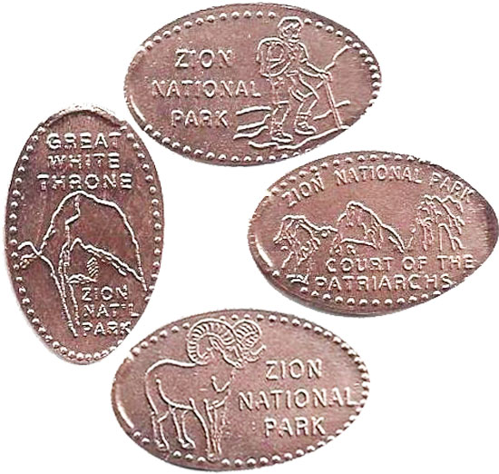 Machine 1: All have 'Zion National Park', on them. Designs are;
