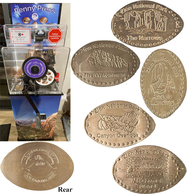 5/10/22- Machine is now in the Bumbleberry Inn Bakery and Gift Shop. It has 5 different Zion National Park landmarks with the Bumbleberry stamp on the back. Machine is rolling pre-1982 pennies perfectly. TEC 4954