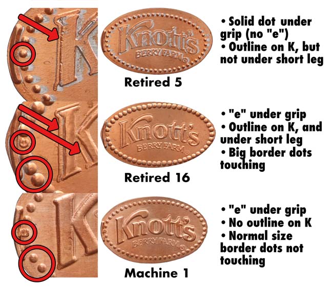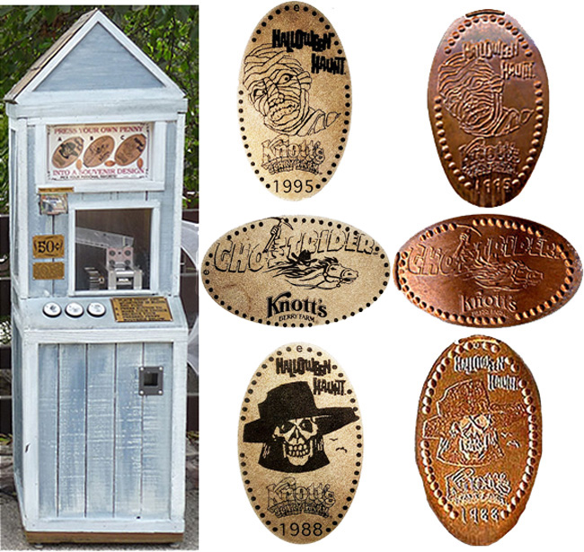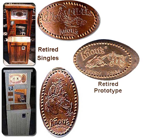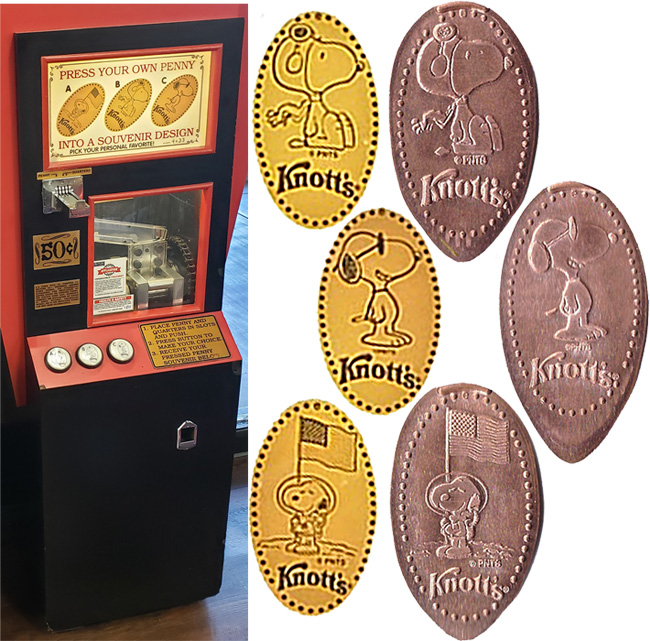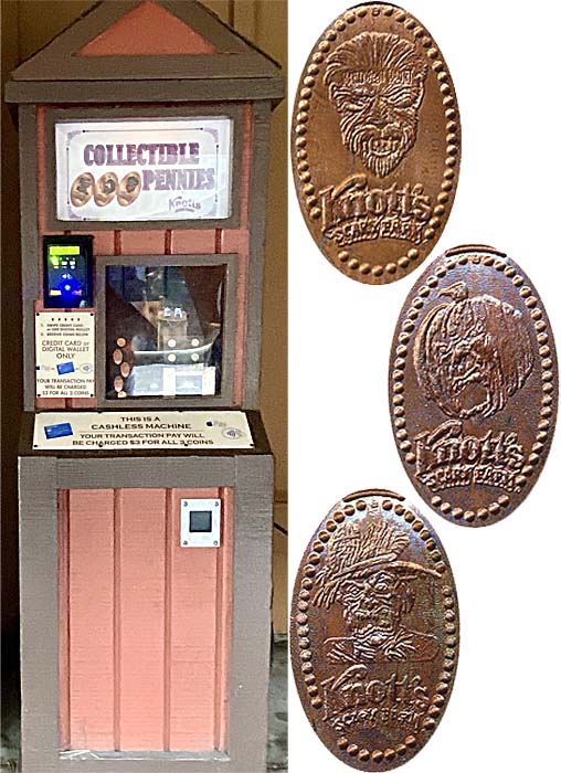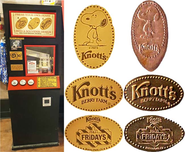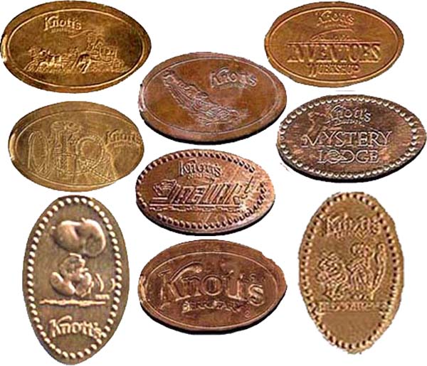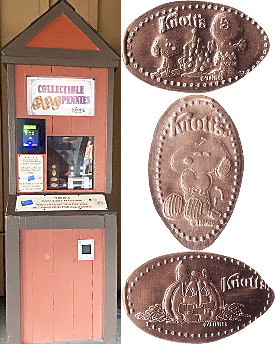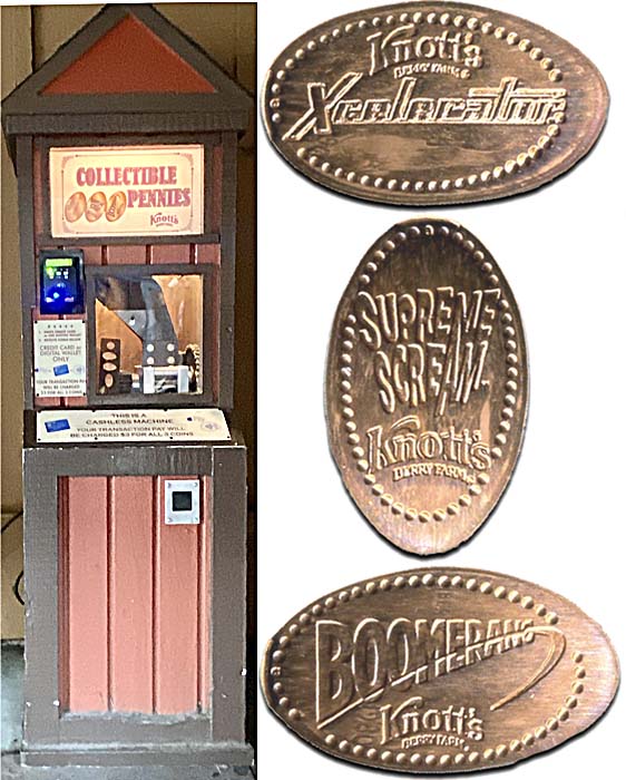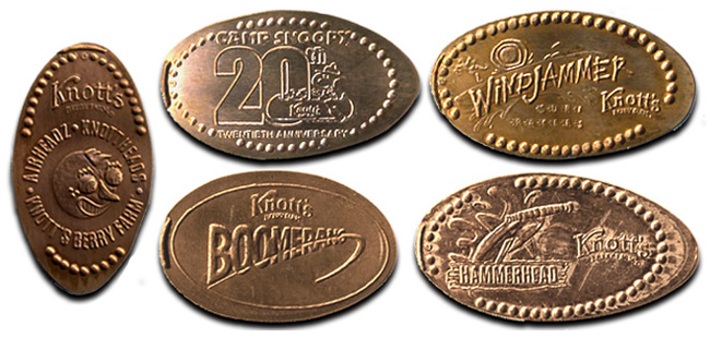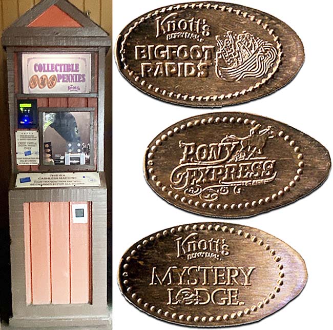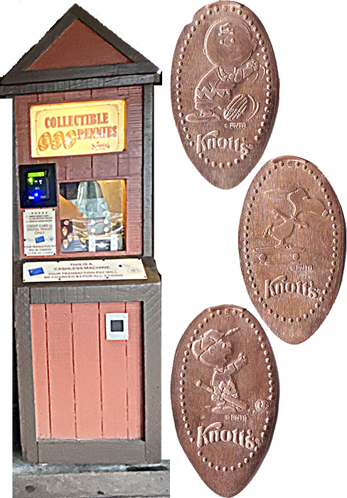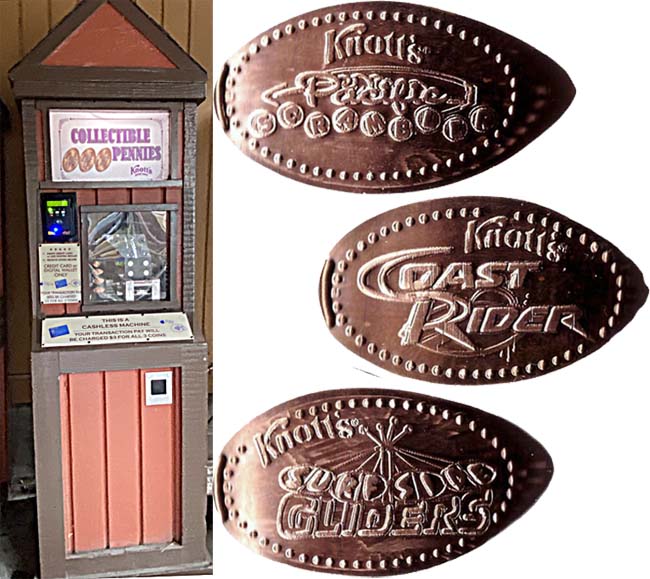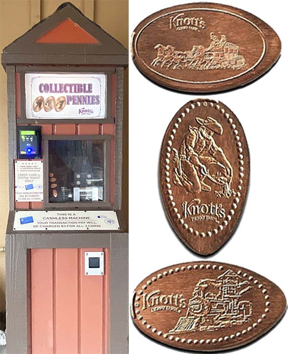 All Knotts Berry Farm machines are $1 per design pre-loaded zinc machines. Knotts is now a Cashless park.