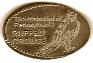 Electric Machine with a design of Pennsylvania's State Bird, the Ruffled Grouse. Machine is located at bottom of stairs leading up to game room.