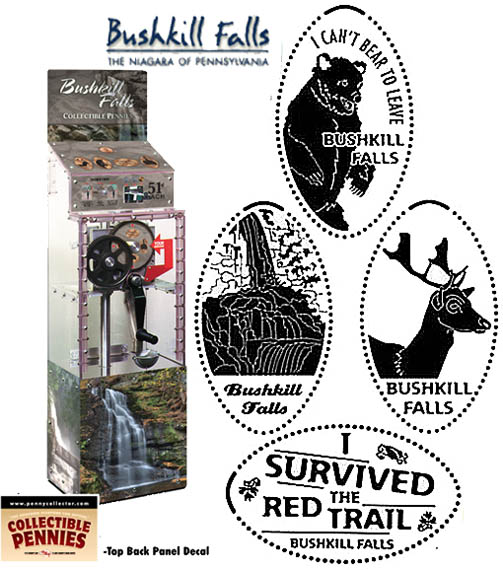 2) Bushkill Falls with image of falls - Rear: I Survived the Red Trail Bushkill Falls Pennsylvania EST 1904, 1267 steps