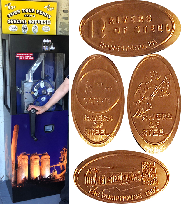 Location open for tours Wednesday - Sunday by advance purchase. Their website is www.riversofsteel.com and I will add the coins to the Cindys’s Cents website www.elongatedpenny.net the week of June 20.
