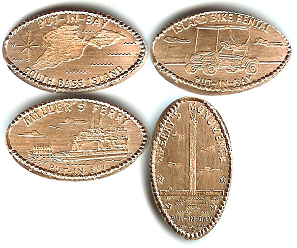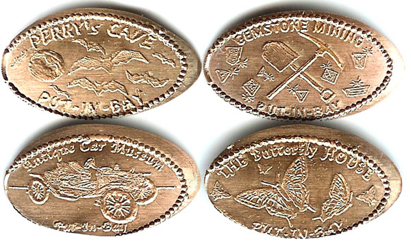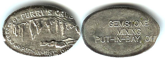 1) Dime, ("mule") "Perry's Cave", "Put-In-Bay, OH" front, "Gemstone Mining, Put-In-Bay, OH" back.