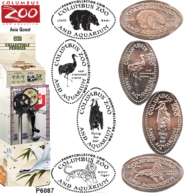 Penny Machine 38 (2017): 1) Flying Fox Bat, 2) Sloth Bear, 3) Red Crowned Crane, 4) Amur Tiger