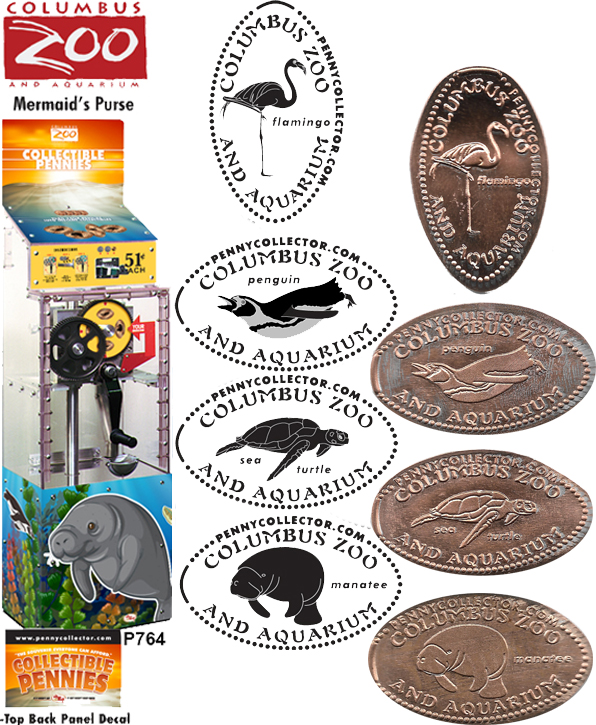 Penny Machine 40 (2017): 1) Flamingo, 2) Manatee, 3) Penguin, 4) Sea Turtle