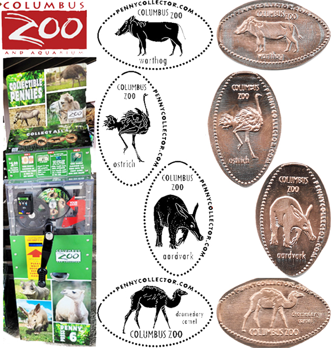Penny Machine 35 (2015): 1) Aardvark, 2) Dromedary Camel, 3) Ostrich, 4) Warthog.