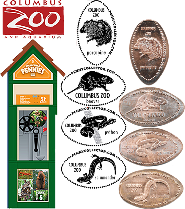 Penny Machine 34 (2015): 1) Beaver, 2) Porcupine, 3) Python, 4) Salamander.