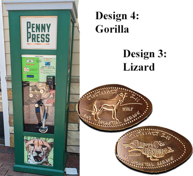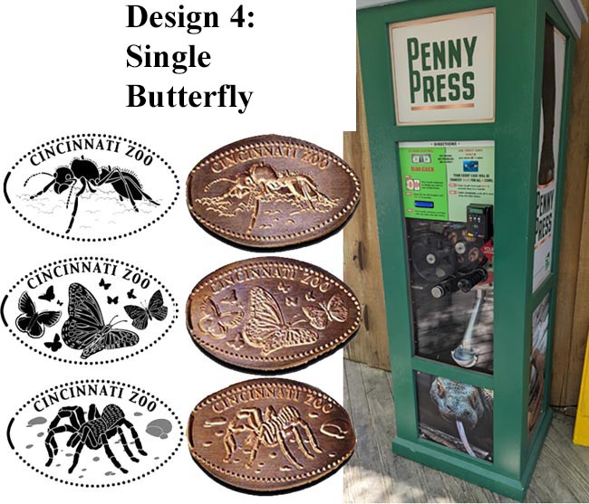 When Pennycollector replaces designs, they replace the die roller; thus, all the designs in each machine are new or re-engraved. The old designs look similar but are re-engraved and can be slightly different.