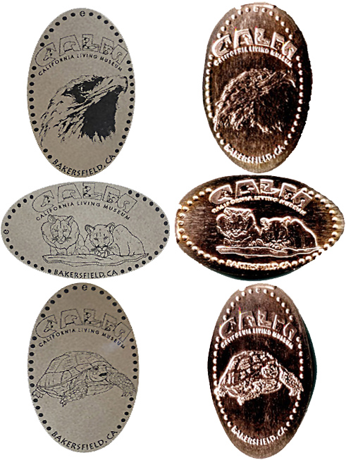 Retired 1: 1) Single die Eurolink machine. "California" top; a picture of a hawk's head in the center; "Living Museum" bottom (v)