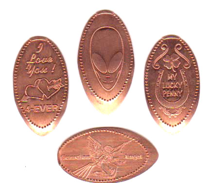 Designs were: 1) Alien head, 2) My Lucky Penny, 3) I Love You, 4), Guardian Angel