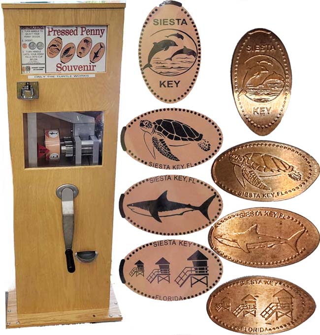 5211 Ocean Blvd Siesta Key, FL , 34242 Phone: 941-346-2995 Website The machine is just inside the right most door, then on the right side. 4 designs: