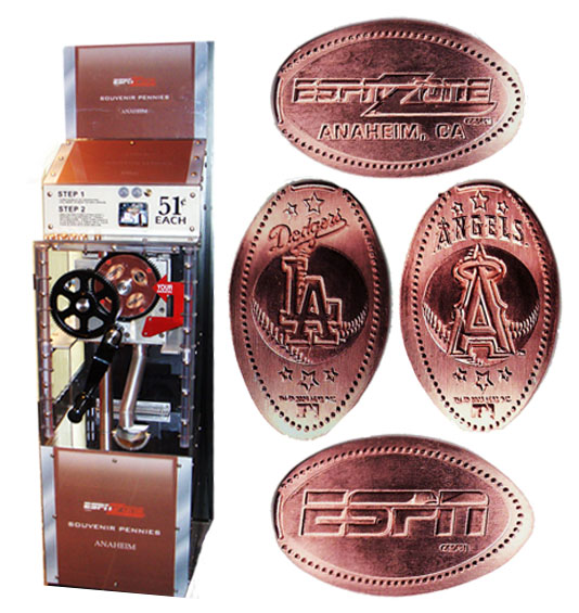 Penny machine is by the Carousel Dolphin near the stairs. It's in the alcove and you can't see it from the gift shop / hotel lobby.