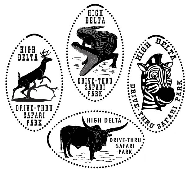 Retired 1: All had 'High Delta Drive Through Safari Park' on them: 1) Alligator, 2) Cartoon Zebra head, 3) Texas longhorn bull, 4) Antelope. |