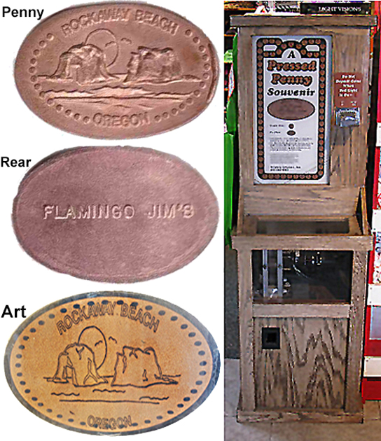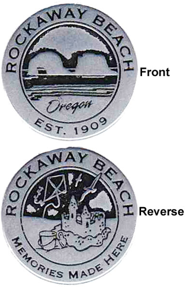 Obverse: Twin Rocks with 'Rockaway Beach Oregon Est. 1909'.