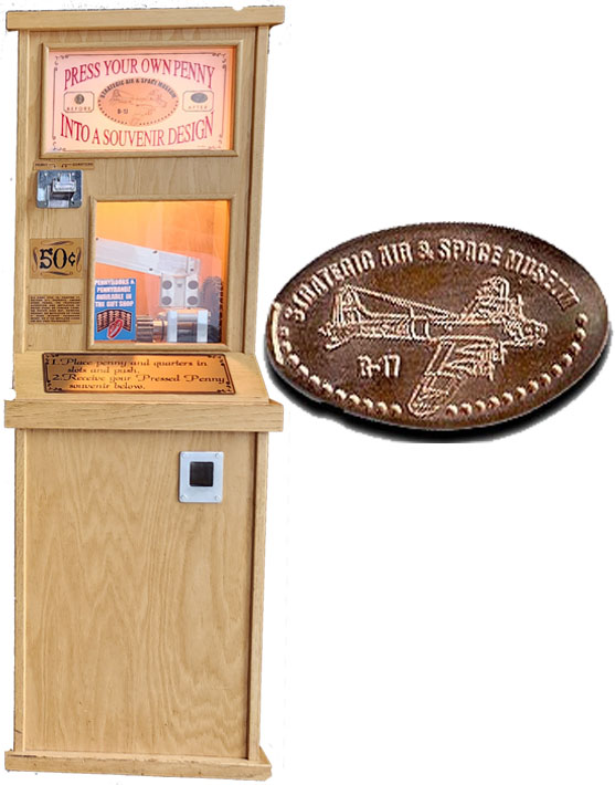 Machine 5: All have Strategic Air & Space Museum' on therm. In the entrance of hanger A. Designs are: