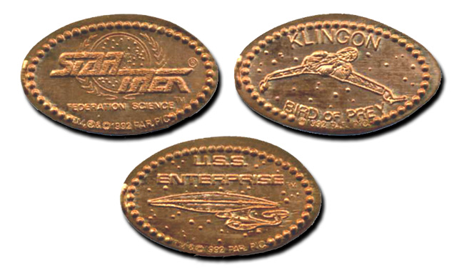 Retired 1: 1) Star Trek logo with 'Star Trek Federation Science' 2) Klingon warship with "Klingon Bird of Prey' 3) Starship Enterprise with 'USS Enterprise'.