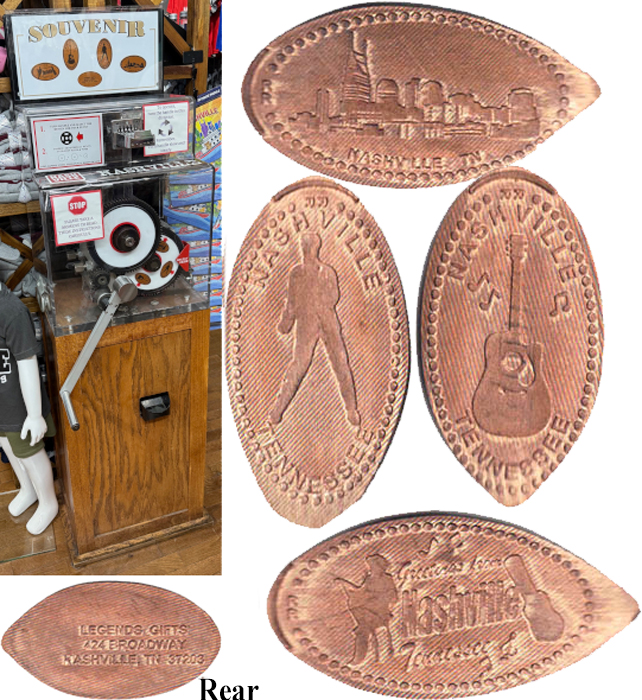323 Broadway Nashville, TN , 37201 2/22: Gift shop on Broadway with penny press that takes two quarters and one penny.
