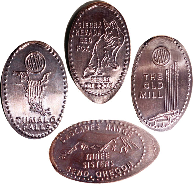 The machine is towards the back of the Visitor Center, but the space is very open. There are four coin designs of local sights and animals to Bend.
