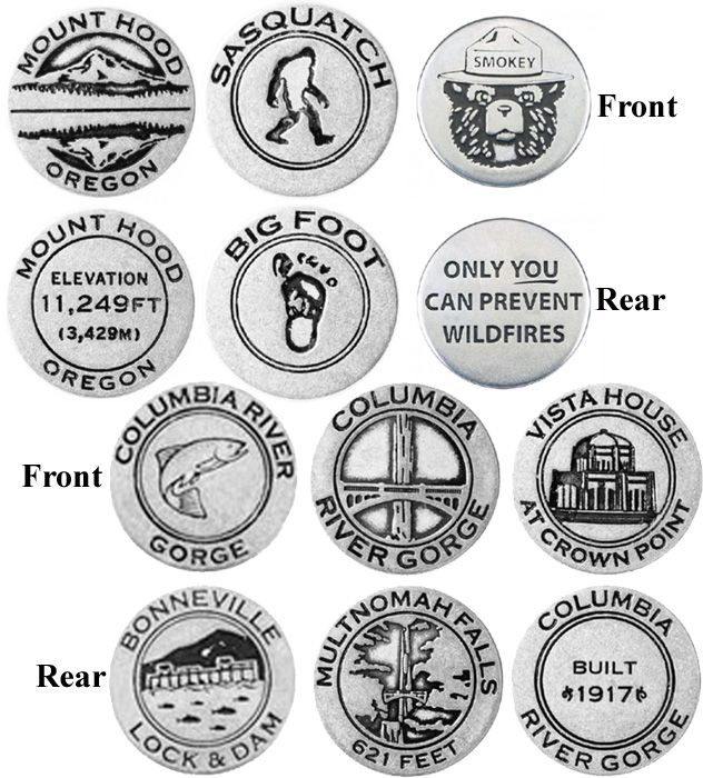 The penny book and token book are for sale in the gift shop for $5.50 and the mini-tokens are 99¢ for each design. (no sales tax in Oregon).