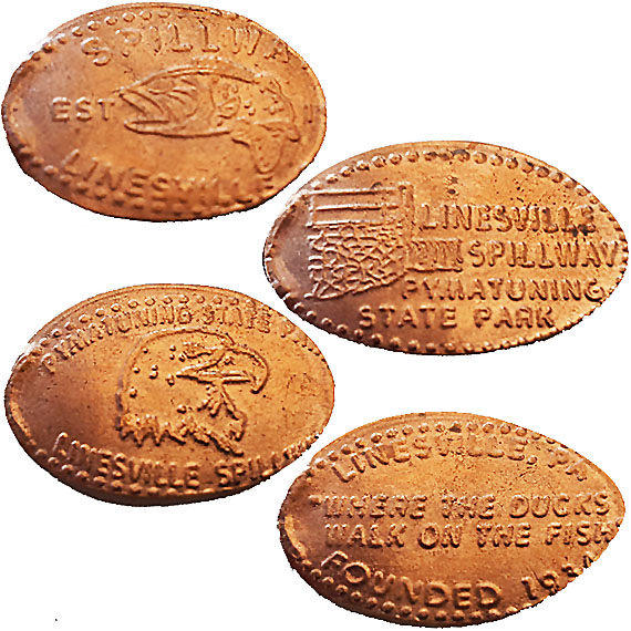 Linesville-Hartstown Road Linesville, PA , 16424 Website The machine is located at the concession stand next to the spillway just west of state route 6 in Linesville, so get in the left lane to turn west if heading north on 6. The spillway is perhaps one of the best known locations because the fish being fed are so crowded that the "ducks walk on the fishes' backs" to compete for the food fed by the visitors. One of the 1000 places to visit in your lifetime.