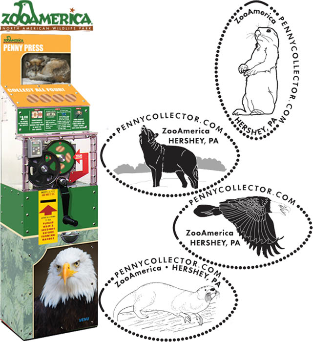 Machine 15: (2024) All have 'ZooAmerica Hershey, PA' on them. Designs are: