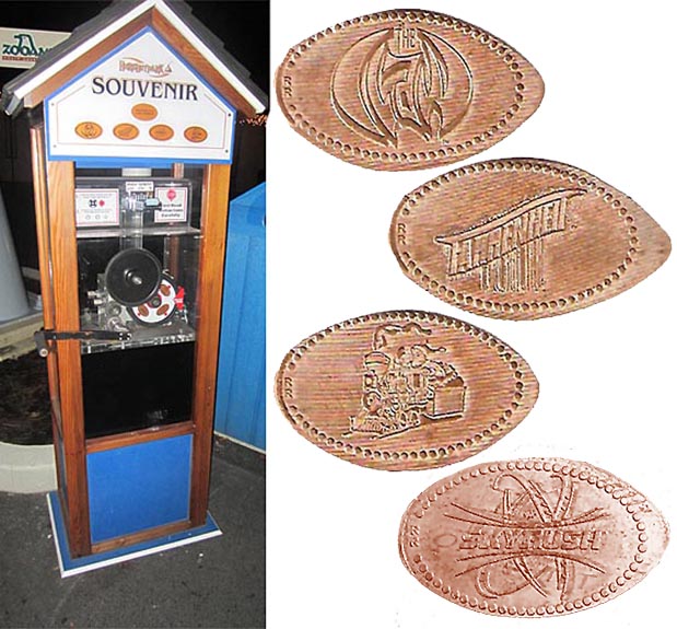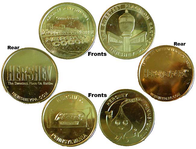 There are 5 machines selling the medallions/tokens. These cost $3.00 each or 2 for $5.00.