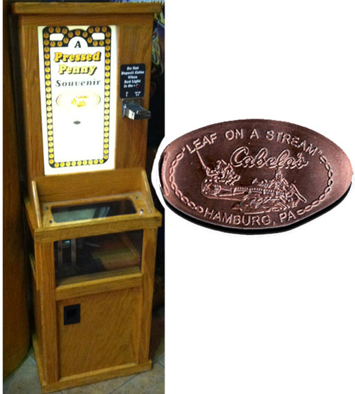 100 Cabela Drive Hamburg, PA , 19526 Phone: 610-929-7000 Website Machine 1 is by the back side of the animal display.