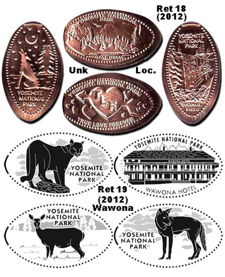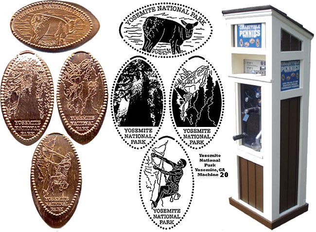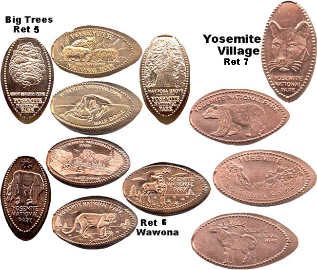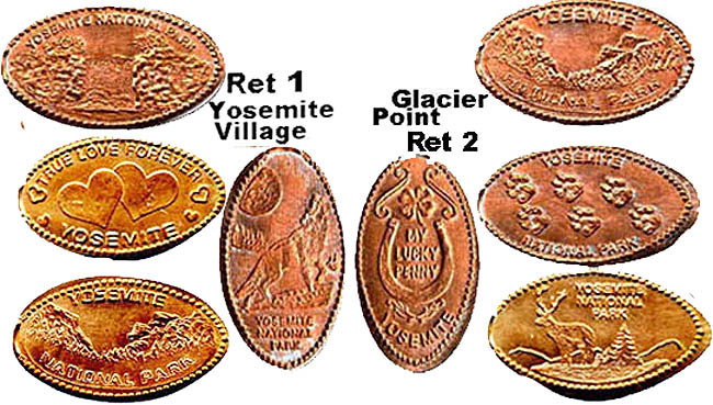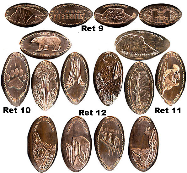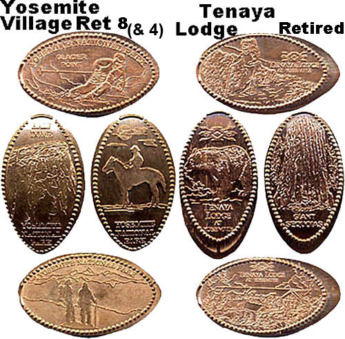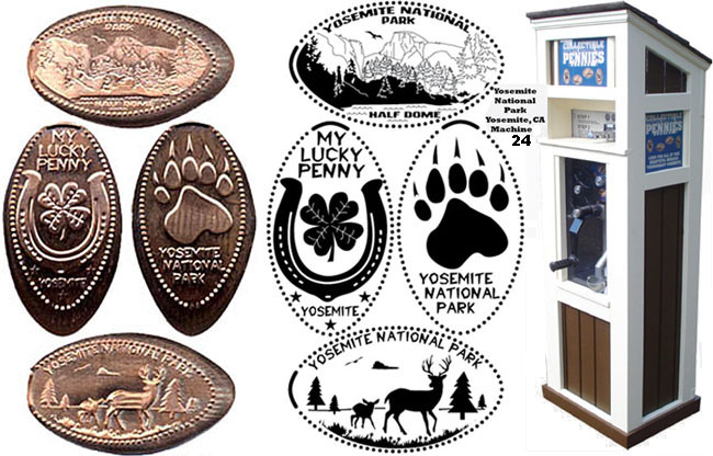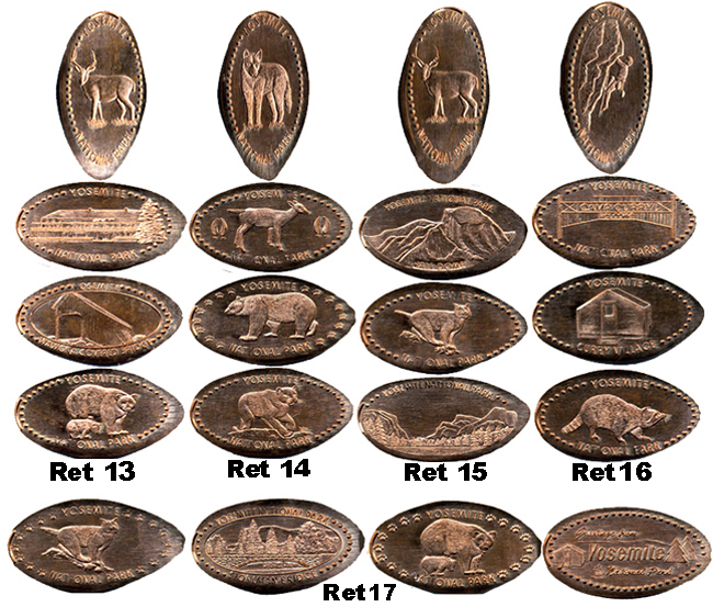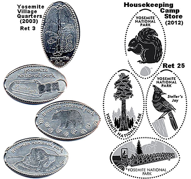 Retired 24 (2011) (Yosemite Village Store #2): 1) Half Dome, 2) My Lucky Penny, 3) Bear paw print, 4) Park area and deer