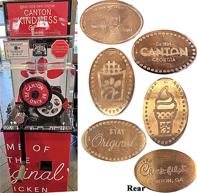 All 5 designs press great. NO cost to the collector. Use your own penny or use one from a container of shiny new pennies on top of the machine. It's marked "Unsquished Canton Kindness Coins."