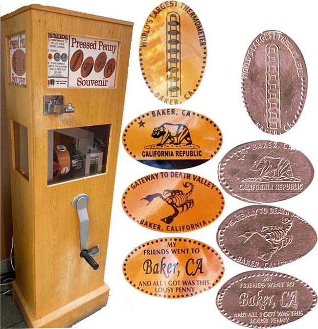 There is also a penny machine at Alien Fresh Jerky next door in the same parking lot. Country Store 76 Gas Station and the 134 Gift Shop are across the street near each other about 1,000 yards away. Both have penny machines. (Baker's a small town).
