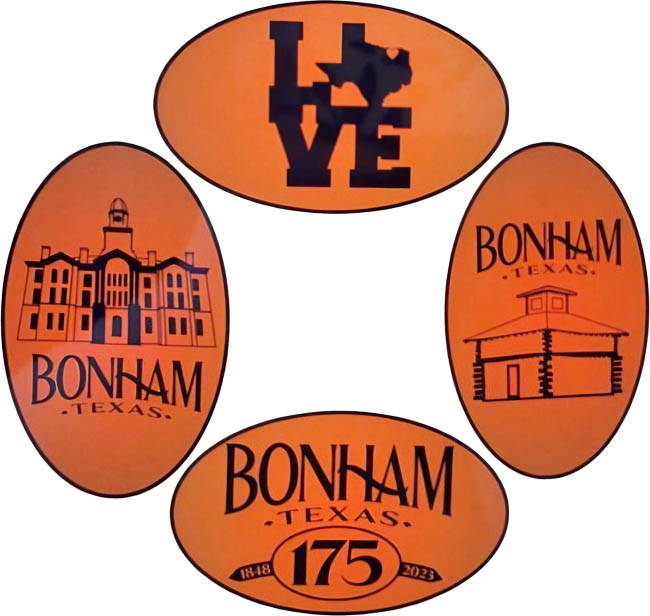4) LOVE with the O as the state of Texas with a heart where Bonham is located in the great state of Texas.