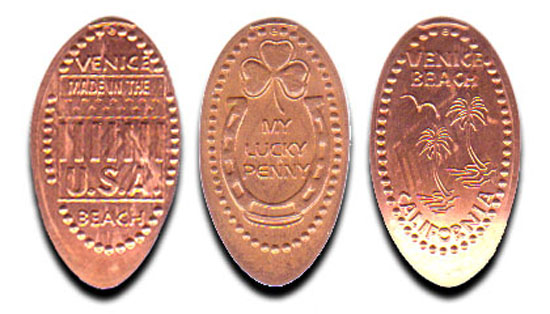 Eurolink machine Designs; 1) Venice Beach Made in the USA (V), 2) palm trees Venice Beach California(V), 3)horseshoe/clover My Lucky Penny (V).
