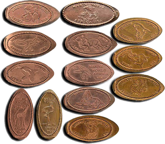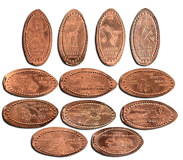 10) Elephant head MARINE WORLD at top; AFRICA USA at bottom-dot border-no initials (H)