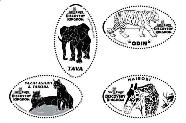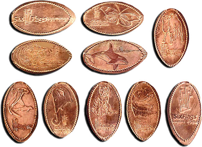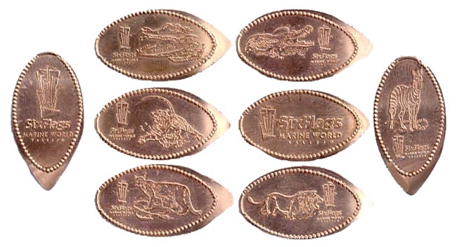 6) Tiger head MARINE WORLD at top; AFRICA USA at bottom-dot border-no initials (H)