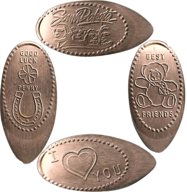2) 'Good Luck Penny'' with clover and horseshoe (V),