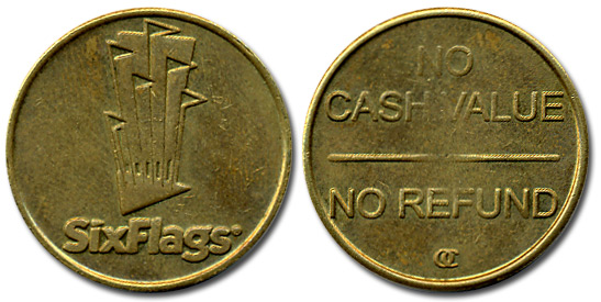 Game Token: 'Six Flags' flag logo /Rear- No Cash Value, No Refund.