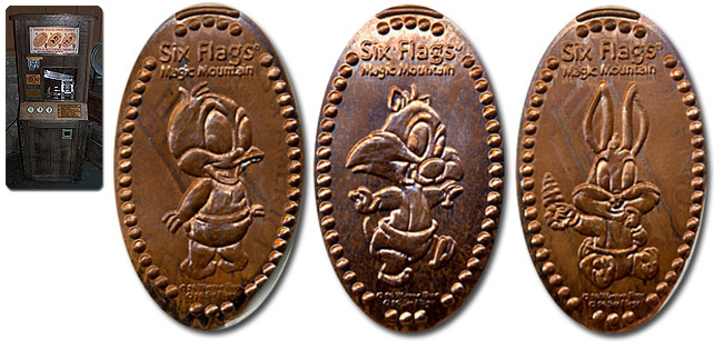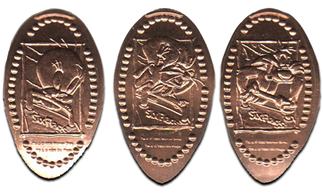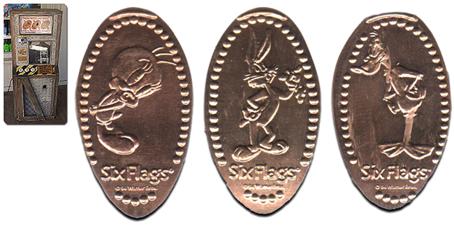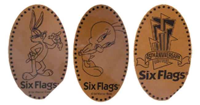 Retired 7: 1) '45th Anniversary Six Flags', logo, 2) Bugs Bunny, 3) Tweedy Bird,