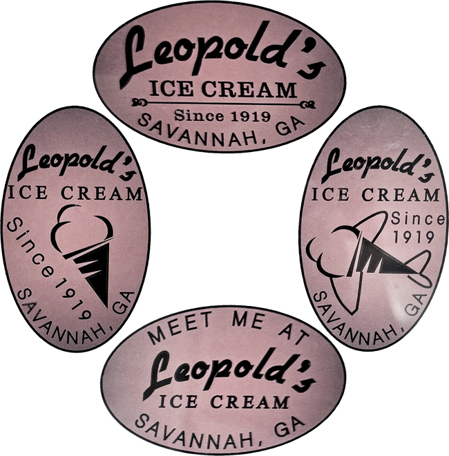 All have 'Leopo/d's Ice Cream Savannah, GA' on them. Designs are: