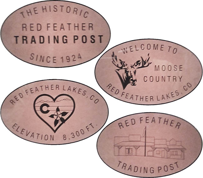 2) “Red Feather Posting Post” around an image of the trading post building,