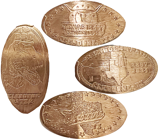 3) 'Chisholm Trail Cleburne, TX', Longhorn left of state image,