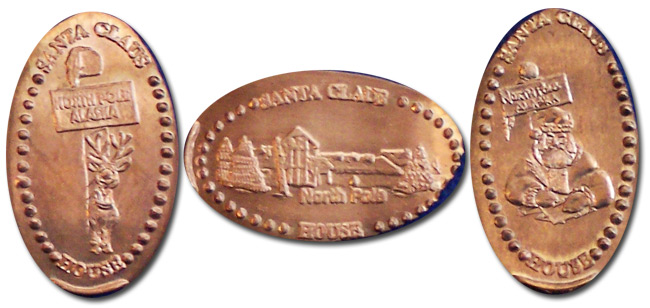 Retired 1: All had 'Santa Claus House' on them 1) Top Santa holding 'North Pole Alaska sign, 2) Reindeer holding 'North Pole Alaska sign, 3) 'North Pole', Santa Clause House.